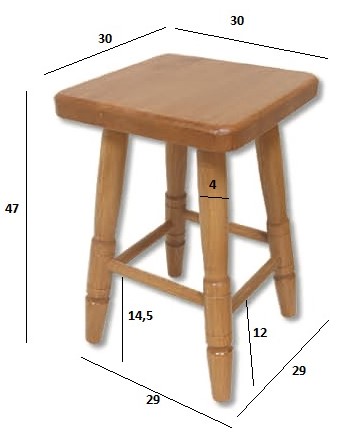 Rozměry: výška 45 cm, sedák 30x30 cm, tloušťka sedáku 3,5 cm, hmotnost 4 kg
