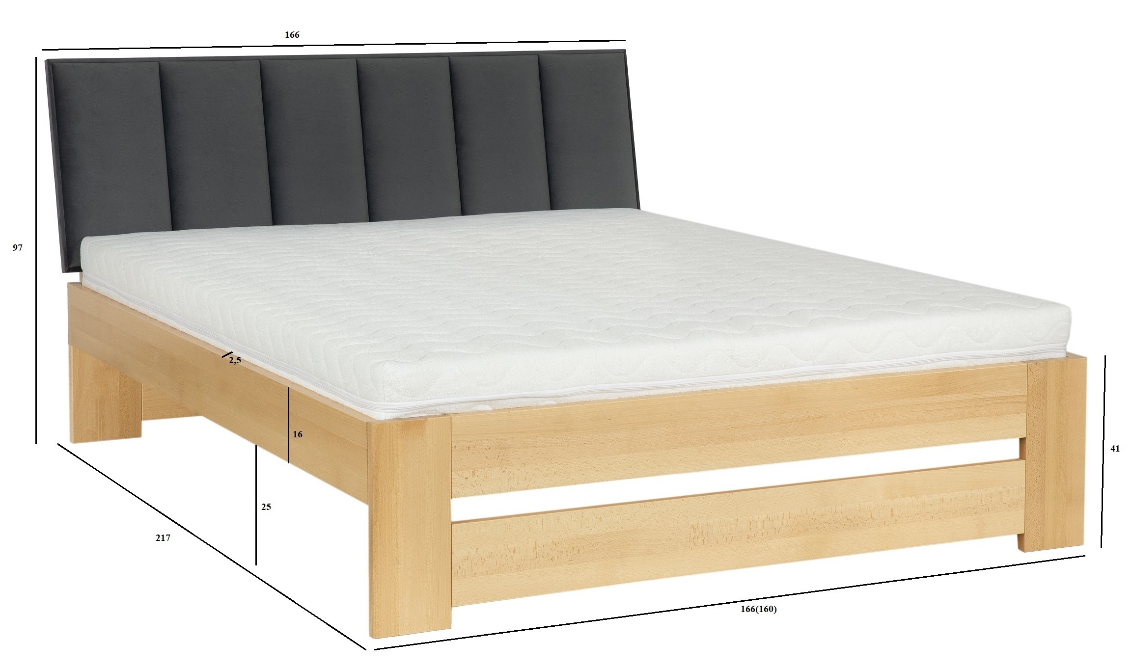 Nabízíme Vám kvalitní dřevěnou postel zhotovenou z masivu buku nejvyšší jakosti. Nadchne Vás nejen charakteristická struktura a viditelná kresba přírodního dřeva, ale také specifická přírodní vůně, která příjemně provoní Vaší domácnost, penzion či hotel. Potěší Vás svou dlouhou životností a v kombinaci s naší zdravotní matrací Vám poskytne dokonale pohodlný spánek.