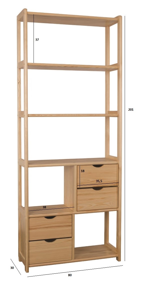Nabízíme Vám kvalitní dřevěný regál zhotovený z masivu borovice nejvyšší jakosti. Díky svému minimalistickému designu se hodí téměř do každého interiéru. Perfektně zaujme ve vaší domácnosti, penzionu či hotelu. Využití najde ve vaší kuchyni, spíži, dětském i obývacím pokoji. Tento regál nabízí dostatek úložného prostoru a zároveň skvěle poslouží k vystavení rodinných fotografií, památek nebo knih.