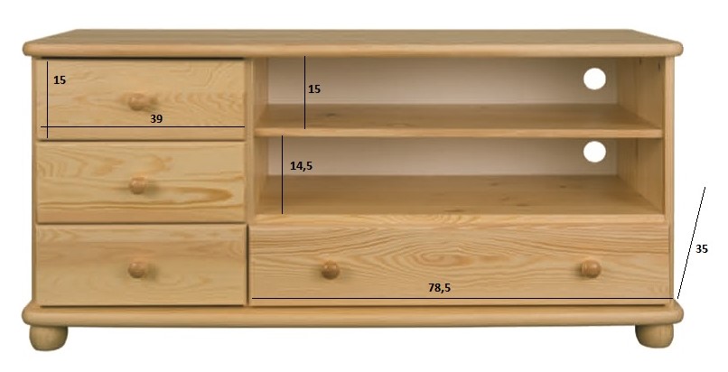 - Drewmax RV127 dřevěný televizní stolek masiv borovice