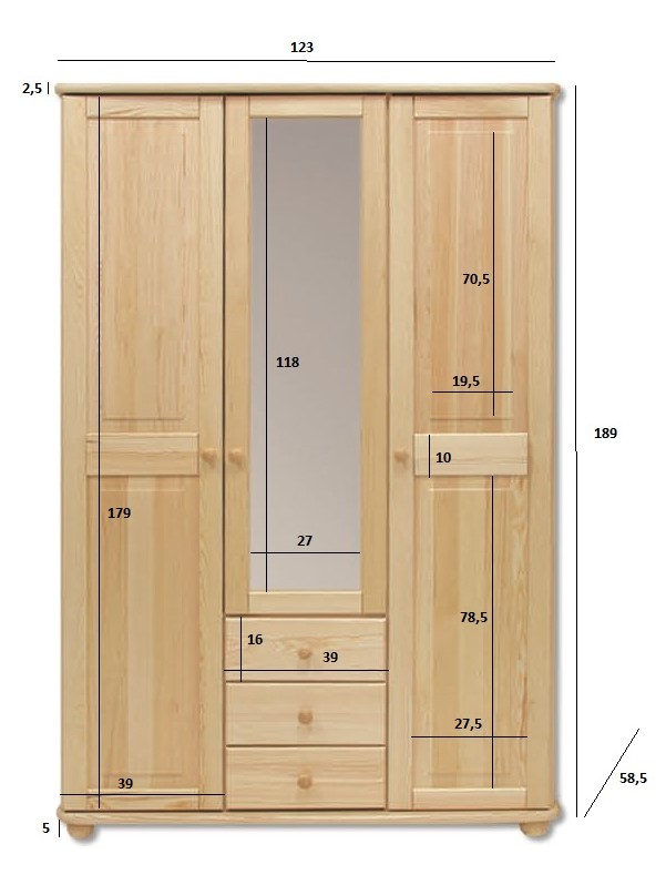 Nabízíme Vám kvalitní dřevěnou šatní skříň zhotovenou z masivu borovice. Díky svému minimalistickému designu se hodí téměř do každého interiéru, perfektně zaujme ve vaší domácnosti, penzionu či hotelu. Skvěle poslouží k uložení a roztřídění vašeho oblečení.