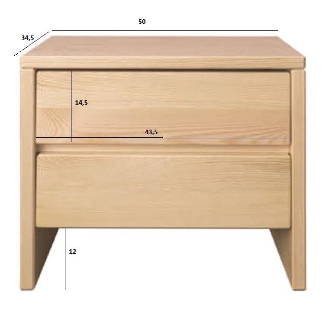 Nabízíme Vám kvalitní dřevěný noční stolek disponující dvěma šuplíky. Celodřevěné korpusy zásuvky jsou na kovových kolečkových výsuvech dovolující dvoutřetinové otevření. Použitý materiál je kvalitní masivní dřevo z borovice. Díky svému minimalistickému designu se hodí do klasického i moderního interiéru. Noční stolek Vám skvěle poslouží jako úložný i odkládací prostor u postele pro knihy, časopisy nebo brýle.