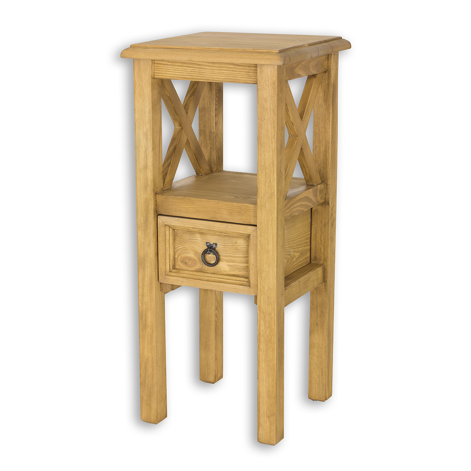Nabízíme Vám kvalitní dřevěný noční stolek vyrobený z masivu borovice v rustikálním stylu. Charakteristická struktura přírodního dřeva a teplé barvy dodají každému interiéru jedinečnou atmosféru a příjemný naturální nádech.