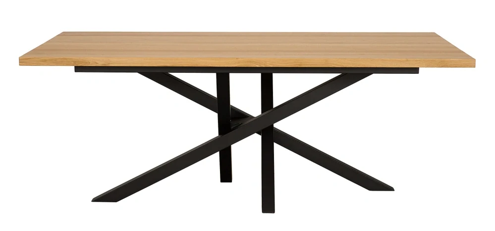 Nabízíme Vám kvalitní dřevěný jídelní stůl zhotovený z masivu dubu nejvyšší jakosti v kombinaci s masivní kovovou konstrukcí. Nadchne Vás nejen viditelná kresba přírodního dubového dřeva, ale také nadčasový design a funkčnost nábytku.