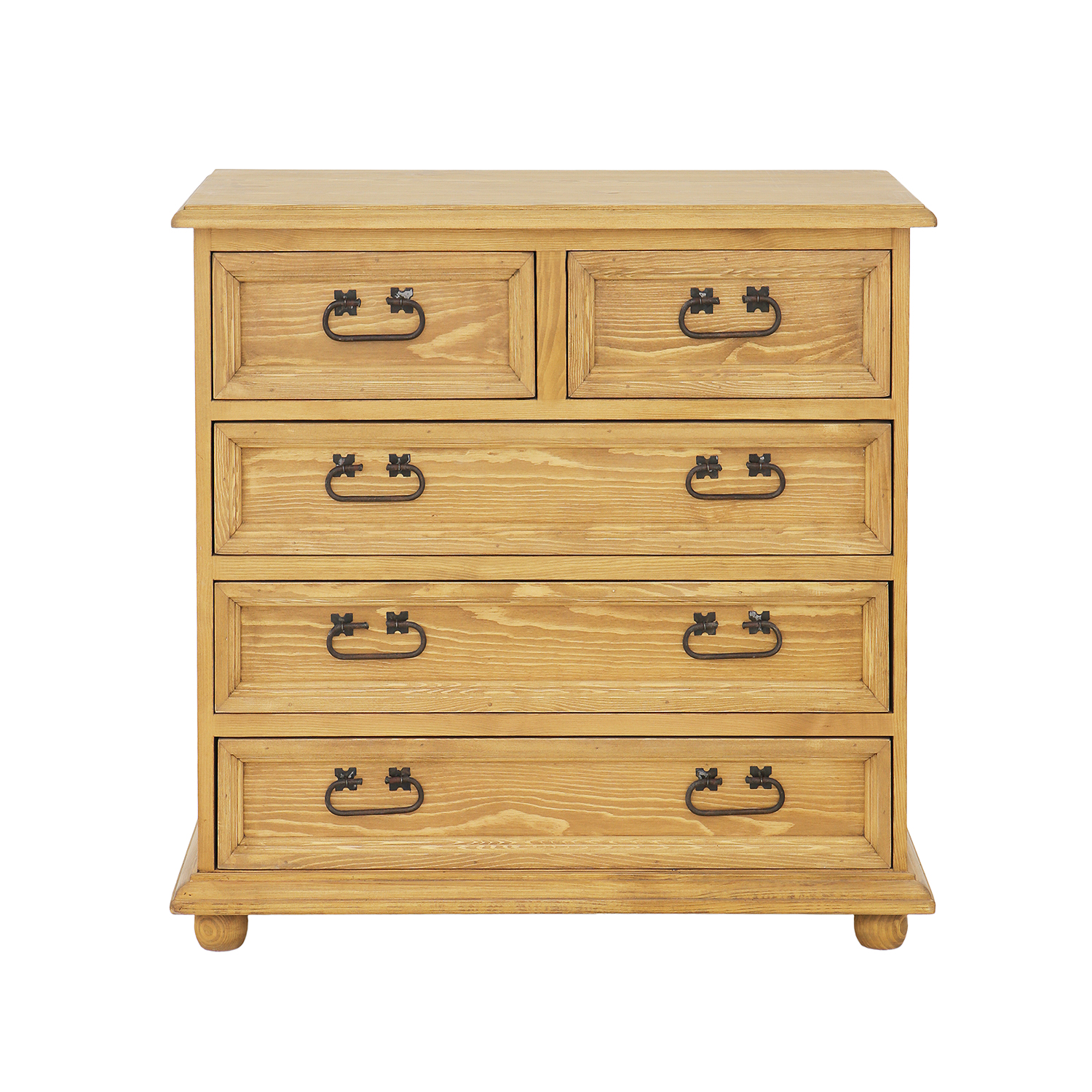 Nabízíme Vám kvalitní dřevěnou komodu disponující pěti šuplíky s pevnými kovovými výsuvy. Charakteristická struktura přírodního dřeva a teplé barvy dodají každému interiéru jedinečnou atmosféru a příjemný naturální nádech.
