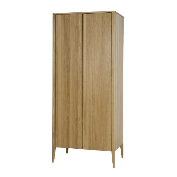Tato dvoudveřová skříň obsahuje jednu šatní tyč a tři police. Vysoké nohy, odkazující na retro styl, dodávají celé konstrukci nejen lehkost, ale také zdůrazňují její elegantní a vytříbený styl.