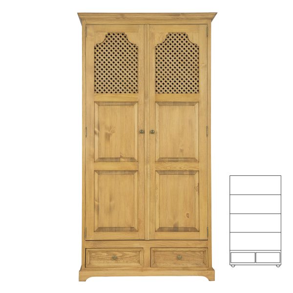 Nabízíme Vám kvalitní dřevěnou šatní skříň zhotovenou z masivu borovice v rustikálním stylu s kovovými prvky jako jsou úchytky či panty. Charakteristická struktura přírodního dřeva a teplé barvy dodají každému interiéru jedinečnou atmosféru a příjemný naturální nádech.